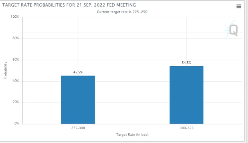 De hecho, tras el discurso de Powell, las probabilidades de una subida de 75 pb en septiembre vuelven a estar por encima del 50%.