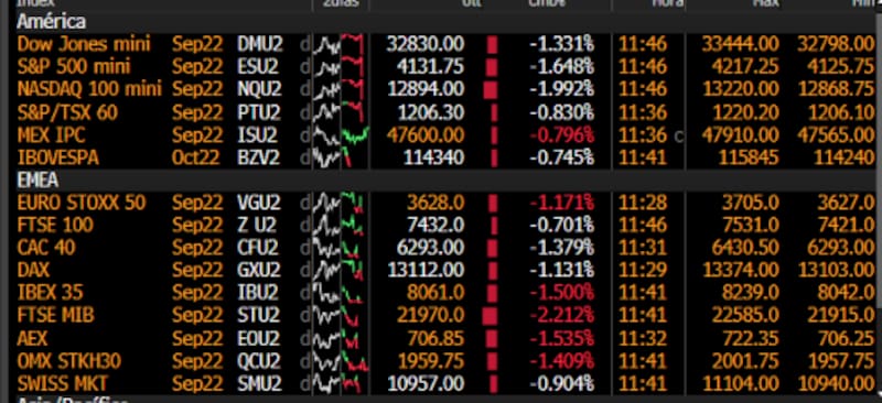 Ante el discurso hawkish de Powell, los mercados operan con bajas del 2%.