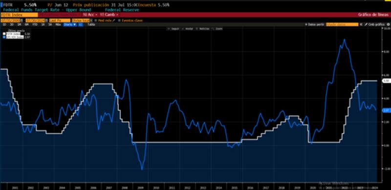 En ese sentido, agregó que, ante datos de empleo que muestran una debilidad marginal respecto a otros meses, cree que la Fed bien podría en su reunión de julio dar algún indicio sobre recortes futuros.