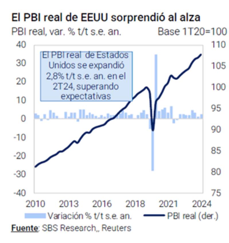"Consideramos que, pese a la sorpresa al alza en el PBI, la Fed sigue de cerca tanto los datos de inflación, que hace varios meses se mantienen en un ritmo consistente con la desinflación, como datos de empleo. En ese sentido, repetimos que de la dinámica del mercado laboral dependerá la de la actividad general, especialmente en el consumo", dijo.