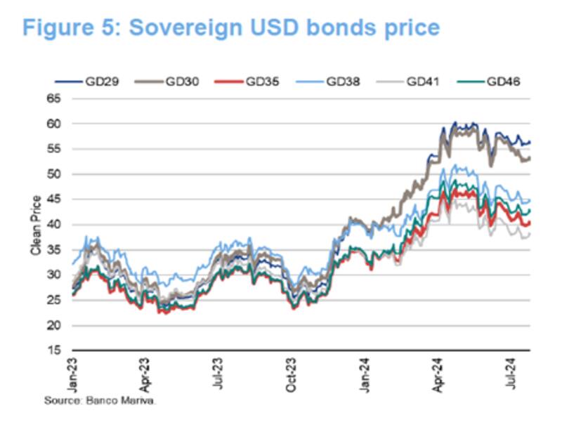 "La clave es que se retome la baja del riesgo país. Para ello, la acumulación de Reservas Internacionales junto a alguna apertura al mercado capitales que despejen las dudas de refinanciamiento de deuda, serán clave para mejorar los precios de los bonos más allá del contexto internacional favorable con una baja de tasa", comentó Donzelli.