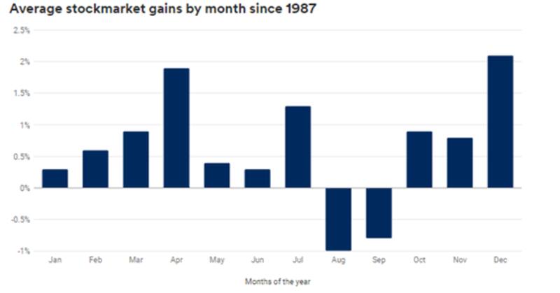 “Nuestro análisis descubrió que los mercados bursátiles mundiales, medidos por el índice MSCI World, han aumentado en un 79% de las veces en diciembre desde 1987, lo que lo convierte en el mejor mes del año para las acciones en promedio durante los últimos 32 años , remarcaron.