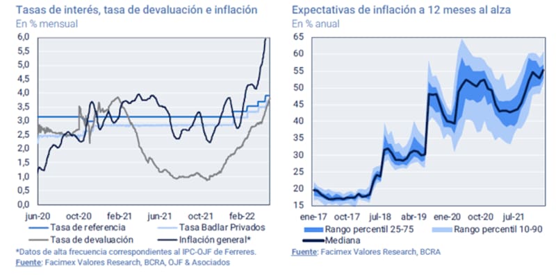 "Dado el impacto que traerá la aceleración inflacionaria sobre los precios, esperamos que en los próximos meses el BCRA aumente el control de cambios y modere el ritmo de devaluación por debajo del 4%, combinando con alguna suba de tasas para evitar que queden muy rezagadas respecto a la inflación", dijeron.