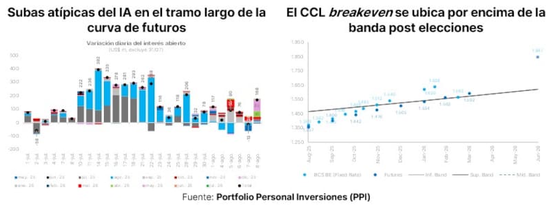 Y es que Alra sostiene que la tasa corta sigue en alza, en particular con la licitación del miércoles. "Hoy el CCL está a la baja y las tasas en ascenso, lo que mantiene atractivo el carry trade, pero con un riesgo alto: una variación brusca del tipo de cambio podría desarmar la estrategia en segundos".
