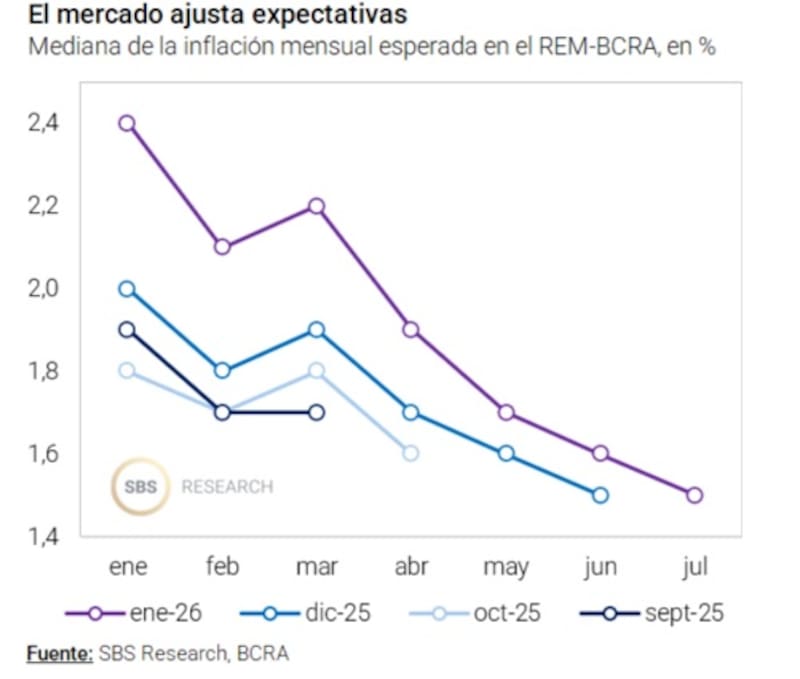 Para el mes de enero, el mercado espera que la inflación se ubique en 2,4% mensual y que luego la dinámica inflacionaria converja al 1,5% para mitad de año.