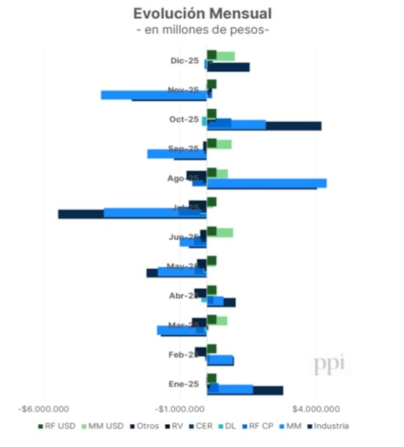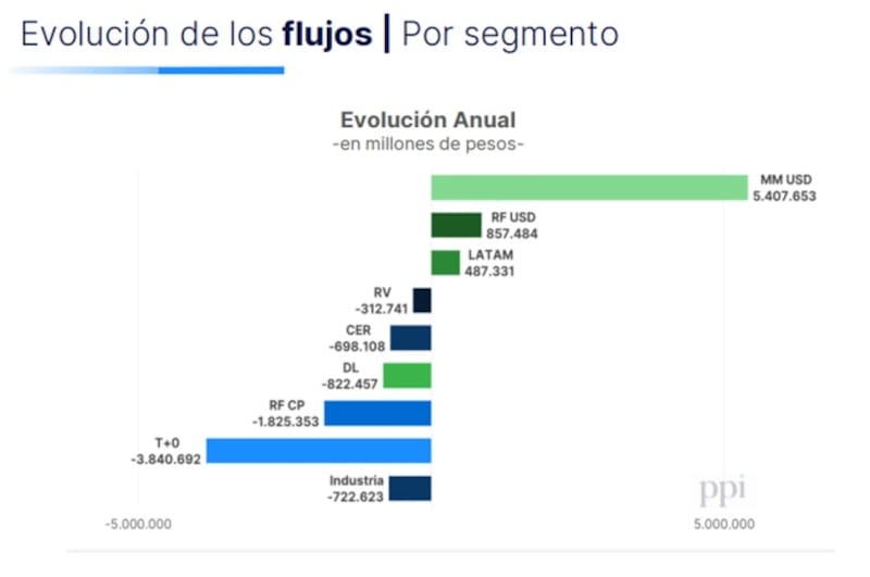 El año pasado, los inversores rescataron fondos en pesos, con los T+0 viendo salidas por $3,8 billones y los fondos T+1, con rescates netos en el año por $1,82 billones.