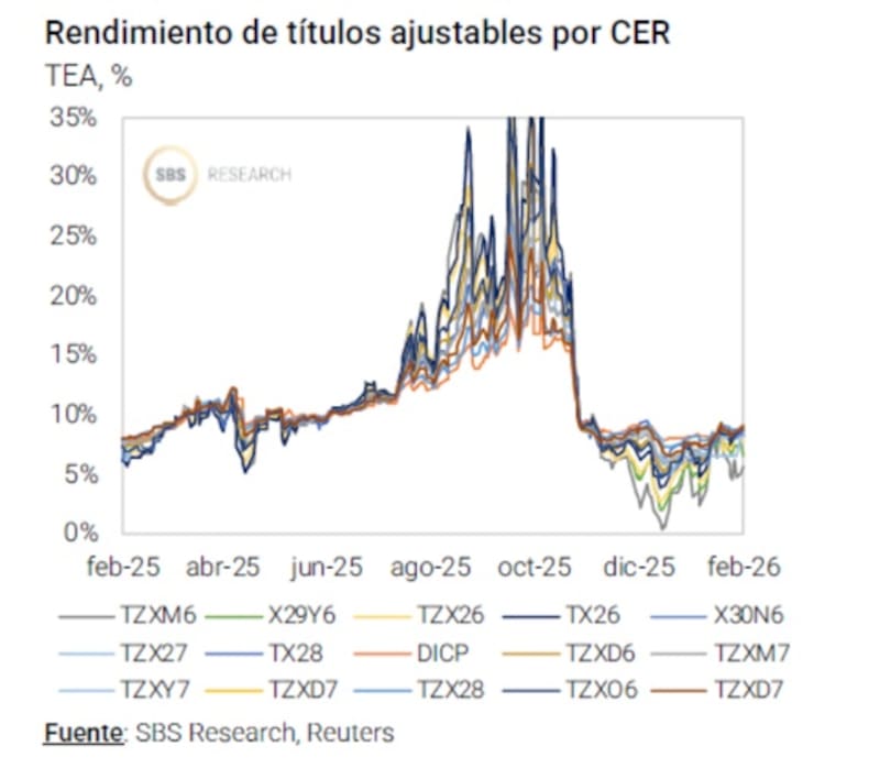 “En pesos, para perfiles conservadores, dada la estabilidad cambiara seguimos priorizando la parte más corta de la curva a tasa fija, destacando T13F6 y S27F6. En el caso de la curva ajustada por CER, preferimos una exposición selectiva en instrumentos de corta y media duración, como el Boncer a junio (TZX26) y la Lecer a mayo (X29Y6)”, indicaron.