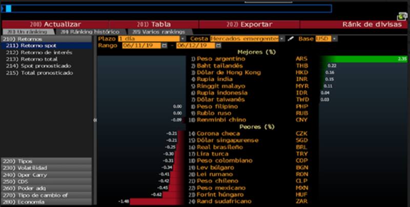 A su vez, el peso fue la divisa emergente que mejor performance tuvo en el día de ayer. El peso también ocupa el mejor puesto entre los mercados emergentes si se lo mira en términos semanales y en términos mensuales. Aun así, al evaluar la dinámica del peso en lo que va del año y en el ultimo año ocupa el peor lugar cómodo. El peso se devalúa 40% en los últimos 12 meses.
