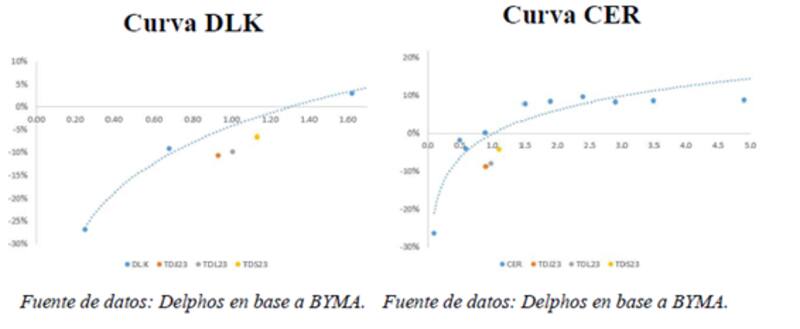 "Si se diera un salto discreto del tipo de cambio en alguno de los próximos 3 meses en torno al 40% o 50% y posterior anclaje nominal, la curva CER rendiría por sobre los bonos dólar linked y duales. En cambio, si la devaluación fuera del 50% en enero (o luego), o bajo escenarios de una depreciación en torno al 20% seguida de ritmos devaluatorios que persigan a la inflación, esperamos que los dólar linked rindan más que los boncer", explicaron desde Delphos.