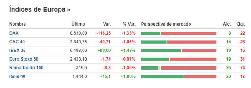 Las bolsas europeas no logran hacer pie en terreno positivo pese al inicio en positivo y al favorable cierre de los mercados asiáticos. Los principales selectivos del Viejo Continente comenzaban el día con subas del 5%. Sin embargo, más rápido de lo esperado volvieron a terreno negativo con bajas de hasta 3,47%. Aunque transcurrida una hora, el índice español intenta sí o sí un rebote, y sube 1,47%.