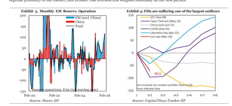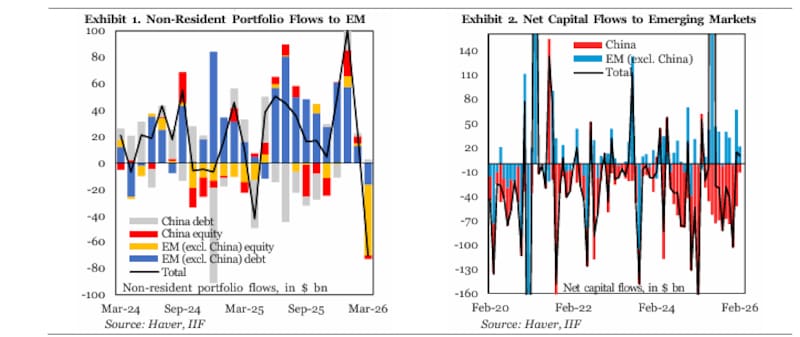 El shock geopolítico en Medio Oriente ya dejó una marca concreta en los mercados financieros globales. En marzo, los inversores retiraron u$s 70.300 millones de los mercados emergentes. El dato no solo es el peor desde la pandemia, sino que confirma que los inversores globales van por una liquidación rápida de riesgo.