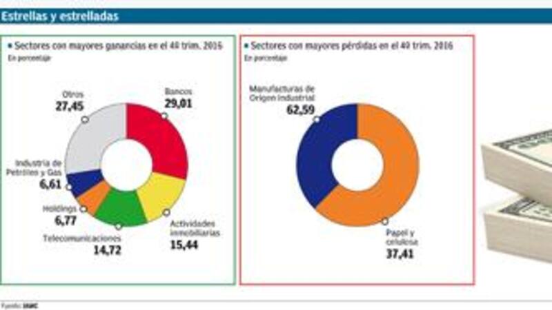 "De 25 sectores, 19 tuvieron resultados positivos (la misma cantidad que en 2015), destacándose Bancos (u$s 1667 millones, +2% año contra año),Telecomunicaciones (u$s 386 millones, -4% año contra año) e Industria Metalúrgica y Siderúrgica (u$s 285 millones, +85%)", señaló el IAMC.