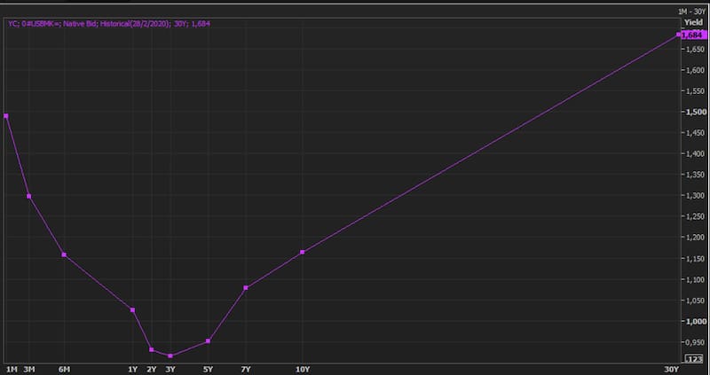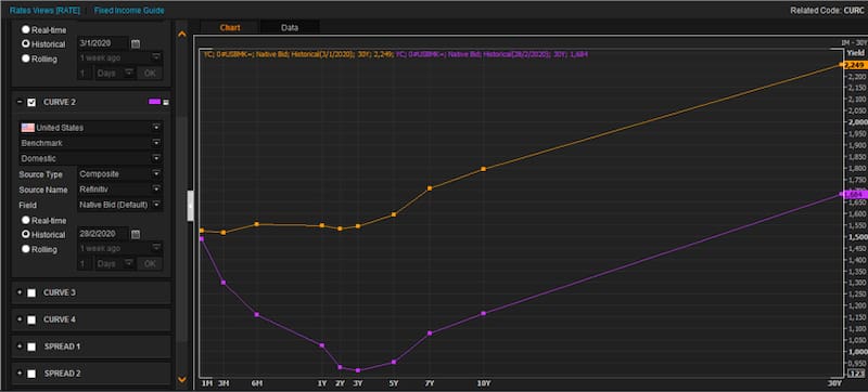 Esto es exactamente lo que ocurrió en marzo de 2020 cuando a partir del estallido de la crisis de coronavirus, el mercado vio un inminente riesgo económico en la que la parte corta de curva se desplazó fuertemente para abajo a medida que estallaba la crisis.