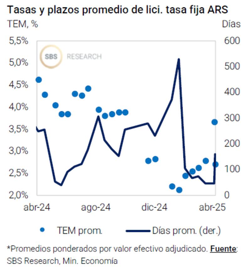"Entendemos que el objetivo de corto plazo pasa por ir logrando estirar los vencimientos en aquellos períodos en los cuales el mercado tiene más apetito por los instrumentos a tasa fija larga. Eso hizo en la última licitación, aún a riesgo de inyectar pesos en la economía", afirmó.