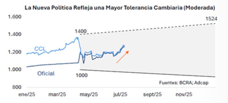 Según el actual esquema cambiario y monetario, el tipo de cambio flota dentro de la banda y el BCRA compraría solo cuando toque la parte inferior de la misma.