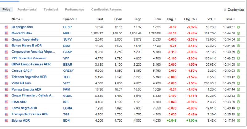 Finalmente, las acciones argentinas en Wall Street operan con mayoría de bajas. Las pérdidas son lideradas por Despegar que retrocede 2,9%, MercadoLibre cae 2,4% y Grupo Supervielle desciende 2,3%.
