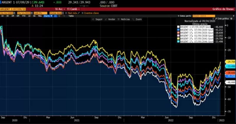 Finalmente, para un Valor Presente Neto de los nuevos bonos a entregar de u$s 50, las mayores ganancias se observan en el Global 2041 que subiría más del 130 por ciento.