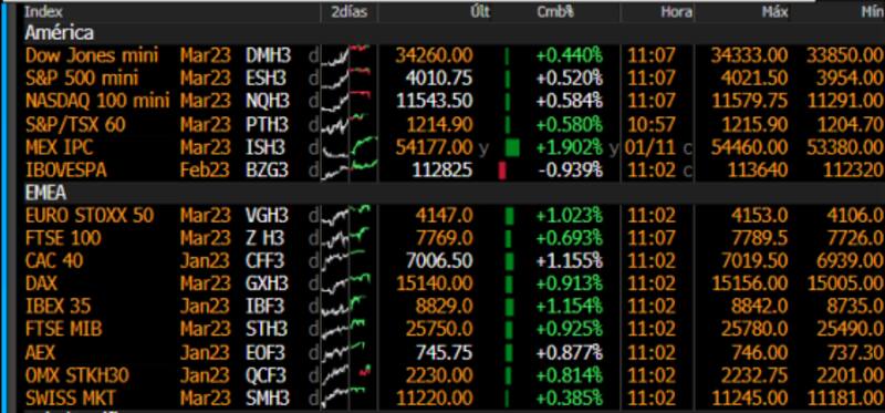 En Europa, las acciones también operan con ganancias promedio del 1%, siendo el Ibex35 de España la bolsa que mas sube junto con la de Francia, ganando 1,1%.