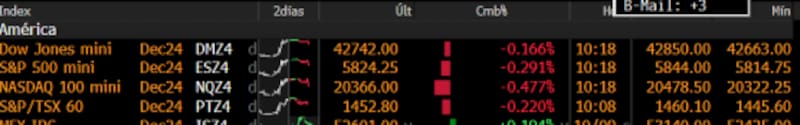 El índice Dow Jones baja 0,24%, mientras que el S&P500 retrocede 0,35%. En el caso de las acciones del sector tecnológico, estas marcan una merma de 0,51% el jueves.