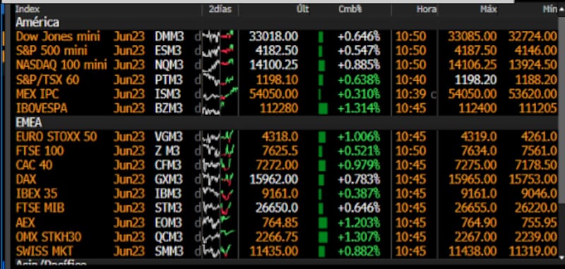 Los principales índices accionarios en Wall Street operaban al alza en medio de esperanzas sobre un posible acuerdo sobre el techo de la deuda en los EEUU.