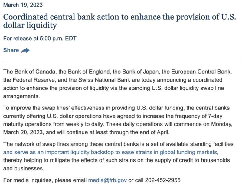 La Reserva Federal de los Estados Unidos (Fed), el Banco de Canadá, el Banco de Inglaterra, el Banco de Japón, el Banco Central Europeo y el Banco Nacional Suizo anunciaron una acción coordinada para evitar una corrida bancaria global y un colapso en los mercados.