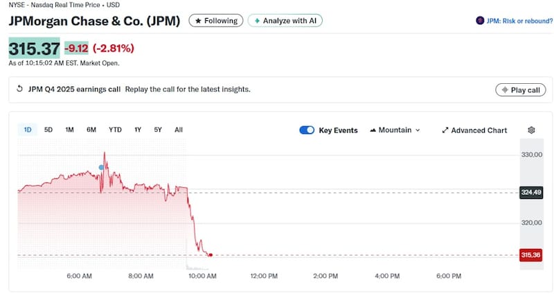 El comienzo de la presentación de resultados del último trimestre de 2025 se dio con los balances de JP Morgan y Delta. En ambos casos, las acciones retrocedieron tras los números presentados en la apertura de ayer.