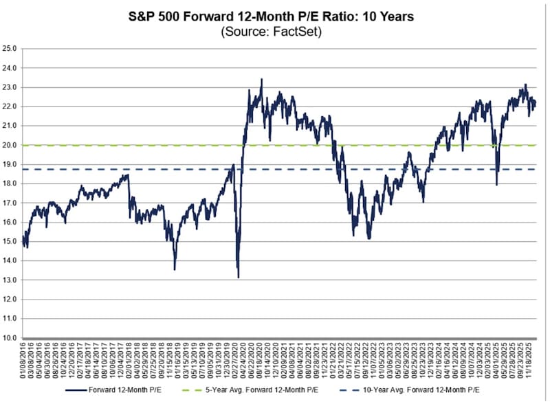 De hecho, cuando se compara el actual nivel de valuación del índice, el mismo se ubica lejos de su promedio de 5 años de 20 veces ganancias y más lejos aún de su promedio de 10 años de 18,5 veces ganancias, según datos de FactSet.
