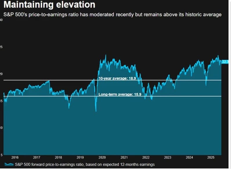 Sin embargo, incluso a pesar de la baja reciente, el índice cotiza en su valor más alto desde 2020 y 2021, haciendo que el mercado cotice con valuaciones elevadas.