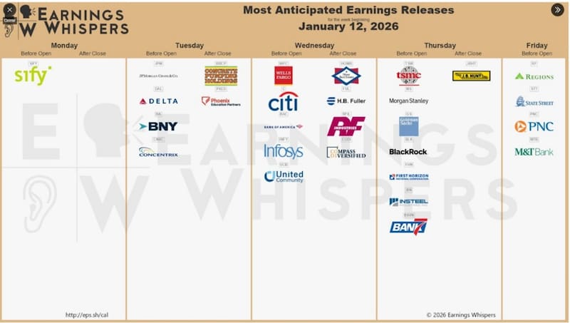 El mercado estará atento a las ganancias esperadas por las grandes compañías en Wall Street, luego de un 2025 con beneficios elevados y por encima de lo que había proyectado el mercado.