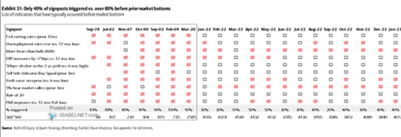 De hecho, según BofA, el mercado bajista no ha terminado. Solo se han activado el 40% de las señales de alerta que confirmarían el fin del mercado bajista