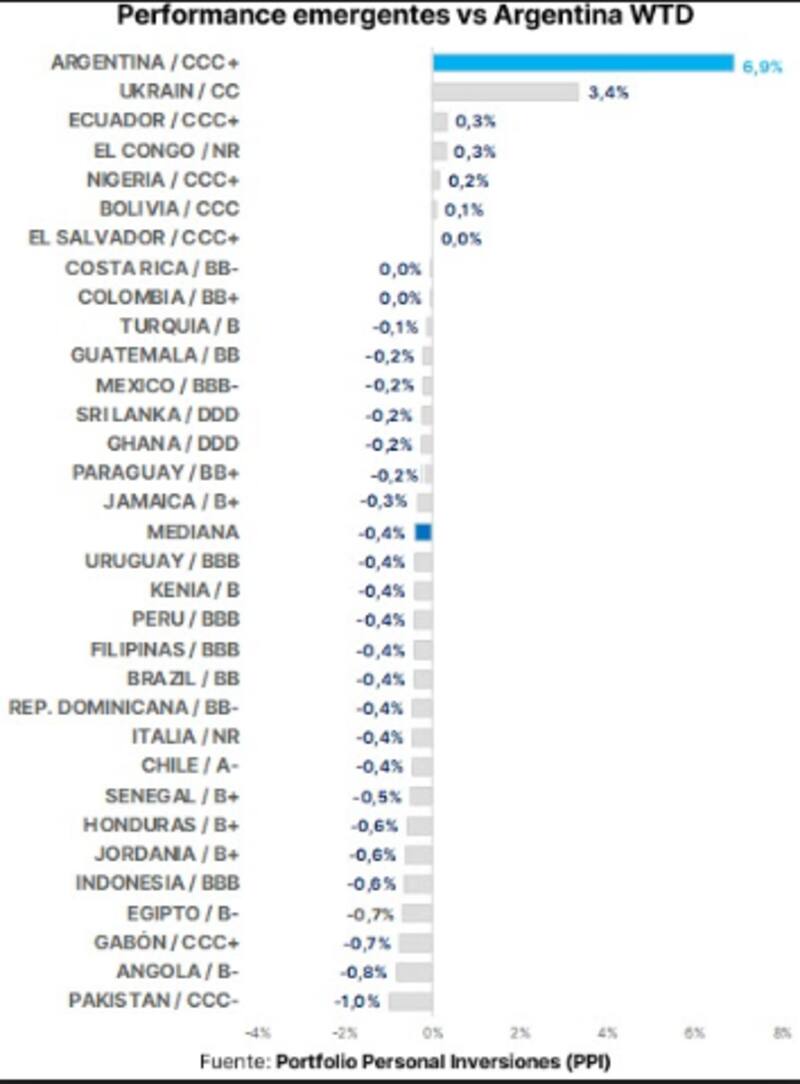 "La deuda local avanzó todas las ruedas de la última semana, por lo que el mercado se adelantó a la obtención del dictamen en el Senado de la Ley de Bases y el Paquete Fiscal. La deuda emergente durante esta semana lateralizo por lo que el impulso de la deuda local se debe completamente a factores locales", puntualizaron.