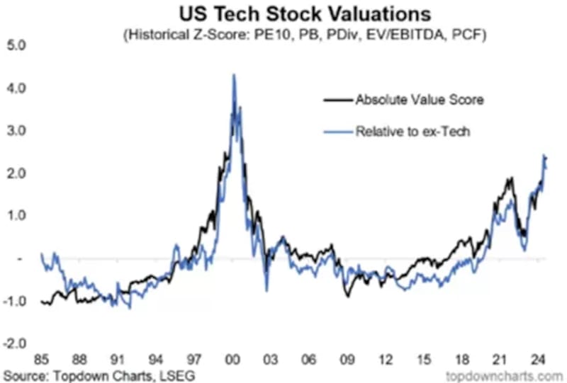 No son solo las acciones tecnológicas las que muestran altas valuaciones, sino el índice en términos generales.