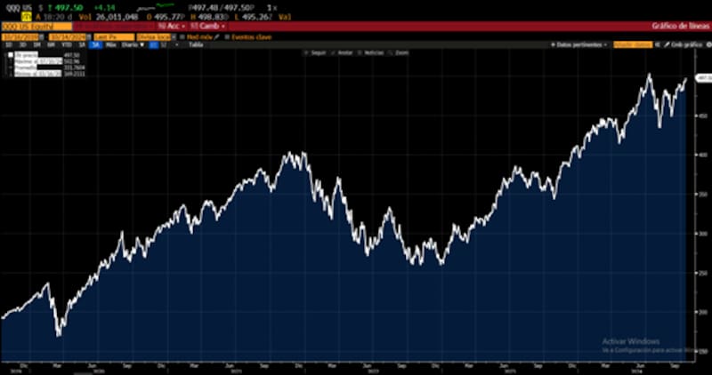 El S&P 500 y el Dow Jones se ubican máximos históricos. Muestran una ganancia de 23% y 14% en lo que va del año. El Nasdaq no está en máximos pero registra una ganancia de 21% este año.