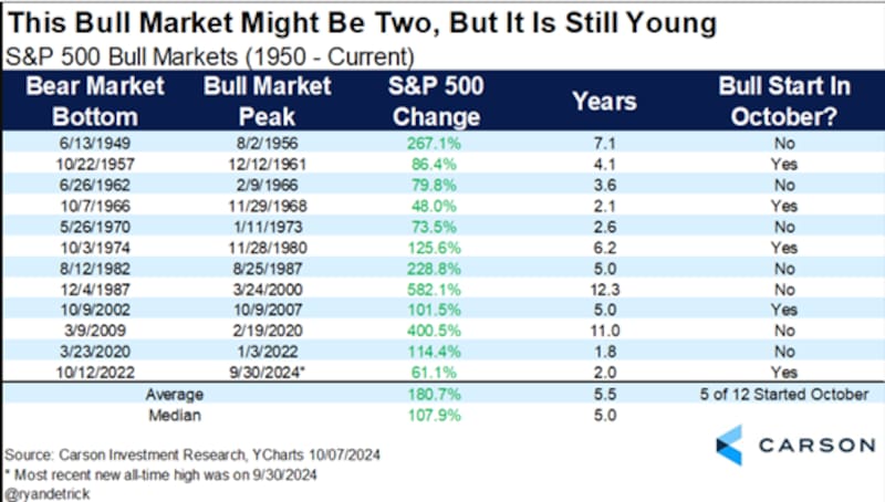 Según la consultora internacional Carson, el actual mercado alcista se inició en octubre de 2022 y lleva ya dos años de duración, con una ganancia superior al 61%.