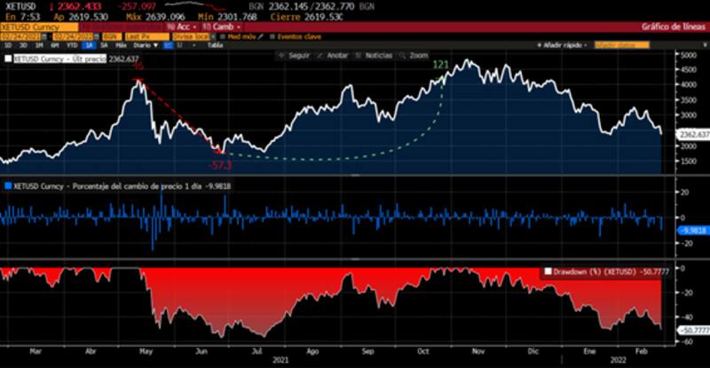 Finalmente, alineadas con el riesgo global, las criptomonedas también se desploman.