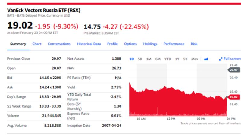 Debido al inicio del conflicto bélico, las acciones rusas se desploman.