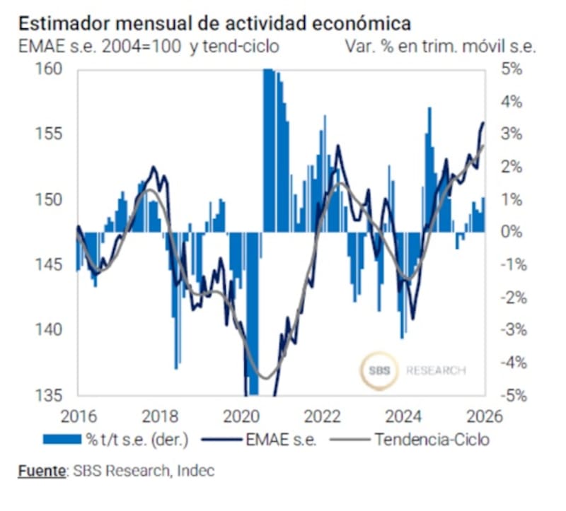 “Los últimos datos muestran una economía que comienza a recuperarse, impulsada por la recomposición del salario real, la cosecha y una mayor inversión, lo que permitiría sostener un crecimiento cercano al 4% en 2026 pese a un arranque de año más débil”, afirmó.