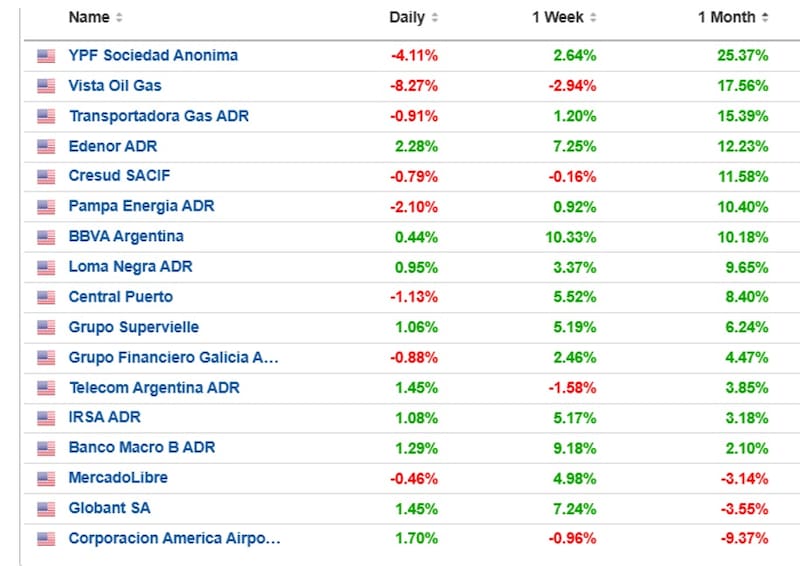 En el lado ganador, las acciones petroleras como YPF, Vista y TGS registraron fuertes subas en el ultimo mes, ganando entre 15% y 25%.
