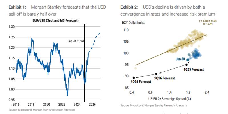 Sin embargo, el panorama no luce favorable. En su último informe sobre la divisa estadounidense, Morgan Stanley sentenció: "Pronosticamos que el dólar estadounidense (USD) continuará su depreciación en lo que resta del año, impulsado tanto por factores fundamentales como técnicos".