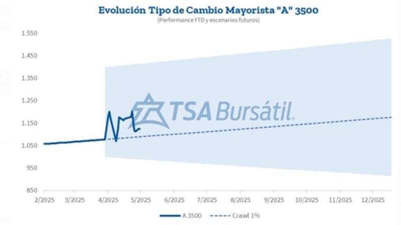 Por otro lado, el mercado también espera que los dólares del campo sigan fluyendo, aumentando la oferta de dólares en el mercado y empujando al tipo de cambio a la baja.