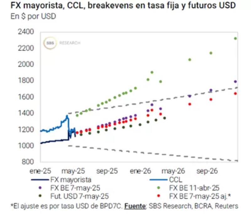 Según sus estimaciones, la Lecap a mayo tiene un dólar de equilibrio de $ 1157, el de junio de $ 1186 y el de julio de $ 1216.