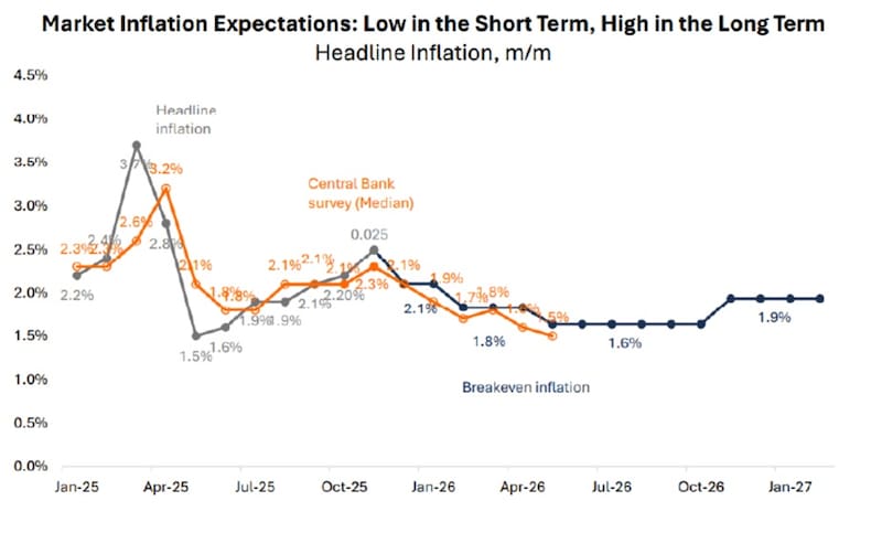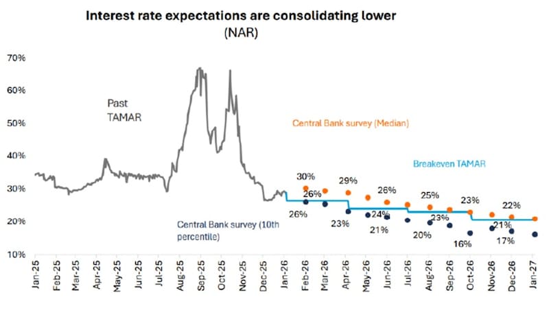 “La volatilidad en las tasas de corto plazo responde más a factores tácticos y de liquidez que a un cambio estructural del escenario macro. En cambio, los tramos medios y largos de la curva empiezan a ofrecer tasas reales positivas, y con mayor visibilidad a medida que la inflación continúa desacelerándose”, sostuvo.