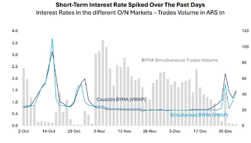 De hecho, se ha observado un periodo de mayor volatilidad financiera de corto plazo, con la caución disparándose a niveles por encima del 100% (TNA)