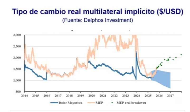 "Las expectativas devaluatorias se deterioraron con fuerza, impulsadas por una tasa real en pesos muy elevada. Hace una semana, el mercado descontaba un tipo de cambio real MEP de indiferencia de $1490 para diciembre de 2026 (con CER rendiendo 19% TIR y BOPREALES largos en 14% TIR). Hoy el mismo CER rinde 31% TIR y los BOPREALES están casi sin cambios, llevando el tipo de cambio real de indiferencia por encima de $1871", advirtieron.