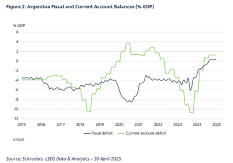 "Mantenemos una visión particularmente positiva de la deuda del país denominada en dólares, que aún ofrece una rentabilidad a 10 años del 11%. Dicho esto, seguimos de cerca la evolución de las cuentas externas y la dinámica cambiaria, ya que la moneda se ha sobrevaluado gravemente. Si bien la deuda de los gobiernos locales de Argentina también ofrece atractivas rentabilidades reales, actualmente preferimos la deuda denominada en dólares debido a la potencial volatilidad cambiaria", detallaron desde el fondo global, Schroders.