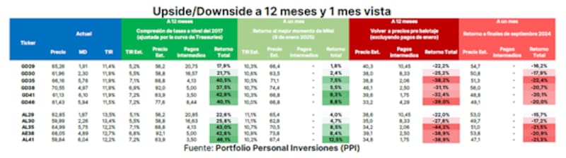 Por su parte, y bajo el mismo ejercicio de realizar proyecciones, los analistas de PPI también se muestran optimistas con los títulos argentinos.