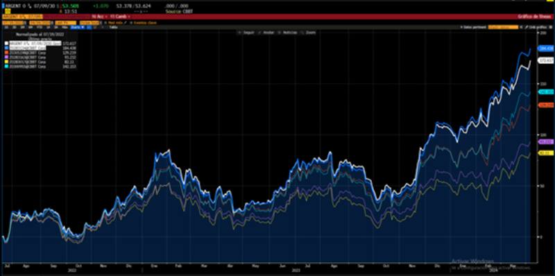 Los bonos del tramo medio suben 129% y 93% desde 2022 a la fecha, mientras que los bonos más largos a 2041 y 2046 ganan 82% y 142% respectivamente desde junio de 2022 a la actualidad.