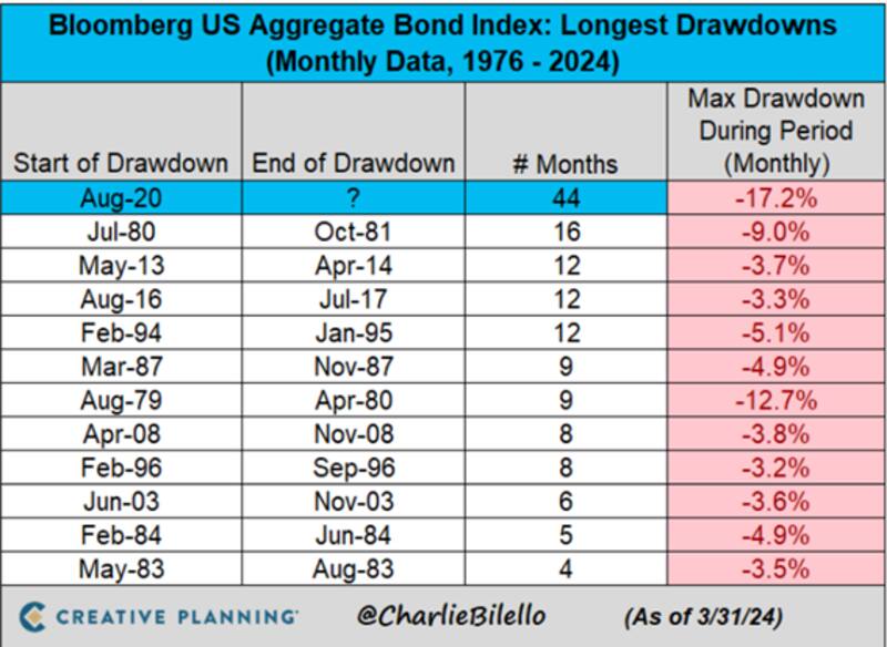 Desde agosto de 2020 ya pasaron 44 meses, por lo que el mercado bajista en el índice de bonos es el más pronunciado desde 1976.