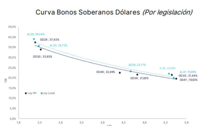 "En el caso de que las TIRs compriman aproximándose a niveles similares a los bonos Emerging Markets el mayor upside se encuentra en la parte corta de la curva de soberanos con retornos que van desde 30% a 80%", afirmaron.
