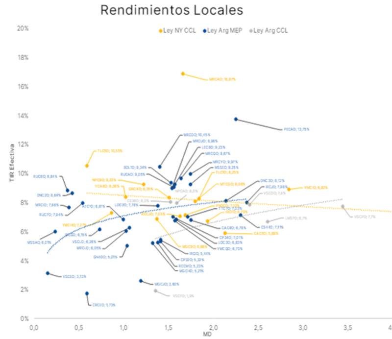 "Nos gusta Telecom 2026 (TLC1O) y Tecpterol 2026 (TTC7O) como también en los Bopreales de menor duration", dijeron.